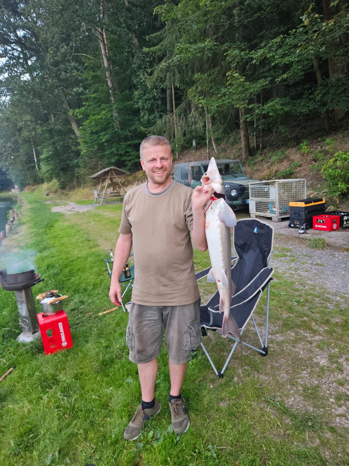 Auf dem Gelände gibt es frischen und geräucherten Fisch von höchster Qualität, darunter Regenbogenforellen, Lachsforellen, Saiblinge, Aale, Welse und Störe. Interessierte können Angelausrüstung ausleihen, und nach vorheriger Absprache ist auch Nachtangeln möglich, inklusive Stellplätze für Wohnmobile.